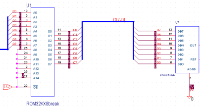 Le schéma ci-dessus met particulièrement bien en évidence les bus d'adresses et de données sur une carte de circuit imprimé. Les lignes d'un même bus, qui transportent les informations en parallèle sont d'ailleurs regroupées en un seul et même trait, plus épais. |